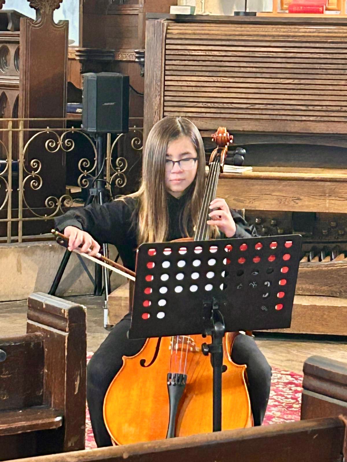 Cellist Ellen Baumring-Gledhill (recent graduate of the Royal Academy of Music and former BBC Young Musician String Finalist) visited us and gave a fantastic recital and masterclass for our string players before performing in the opening concert of the 2024 Aboyne Music Festival.